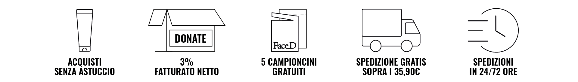 Face D è sinonimo di cura di sé senza ossessioni: l'efficacia della dermocosmesi e la sicurezza di prodotti certificati e approvati dai dermatologi. È qualità a un prezzo ragionevole. Sostenibilità come percorso reale, dei piccoli gesti quotidiani e del fare. Da Face D facciamo tutto seriamente, senza essere seriosi. Perché questo non è un gioco. C’è in gioco la tua pelle.